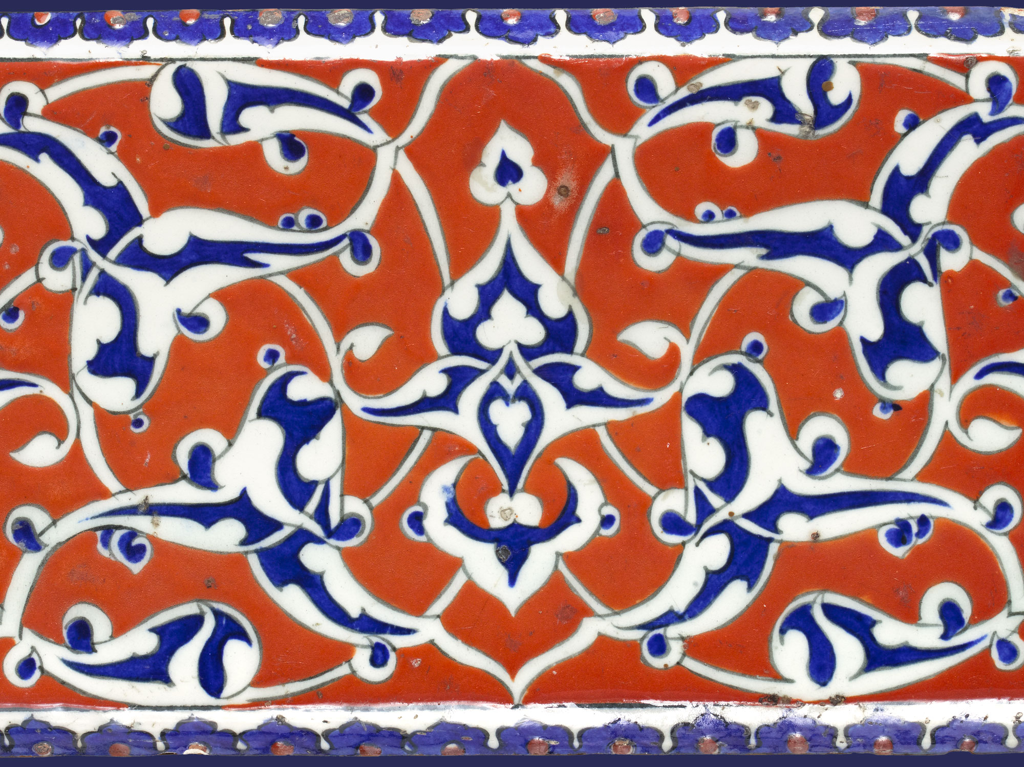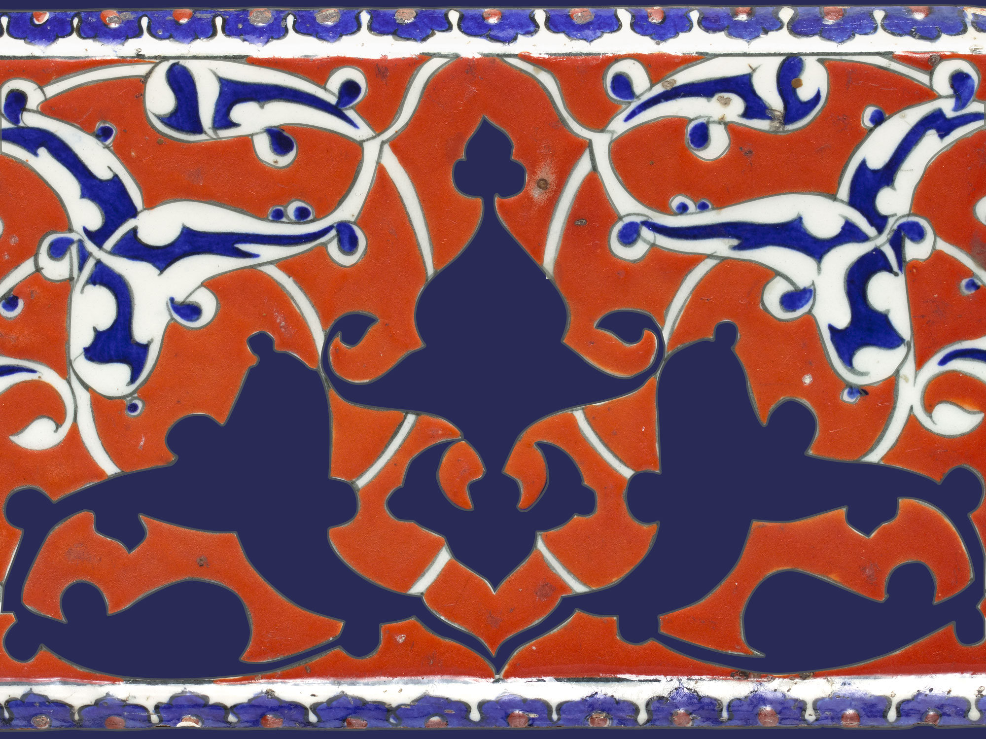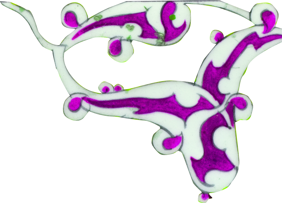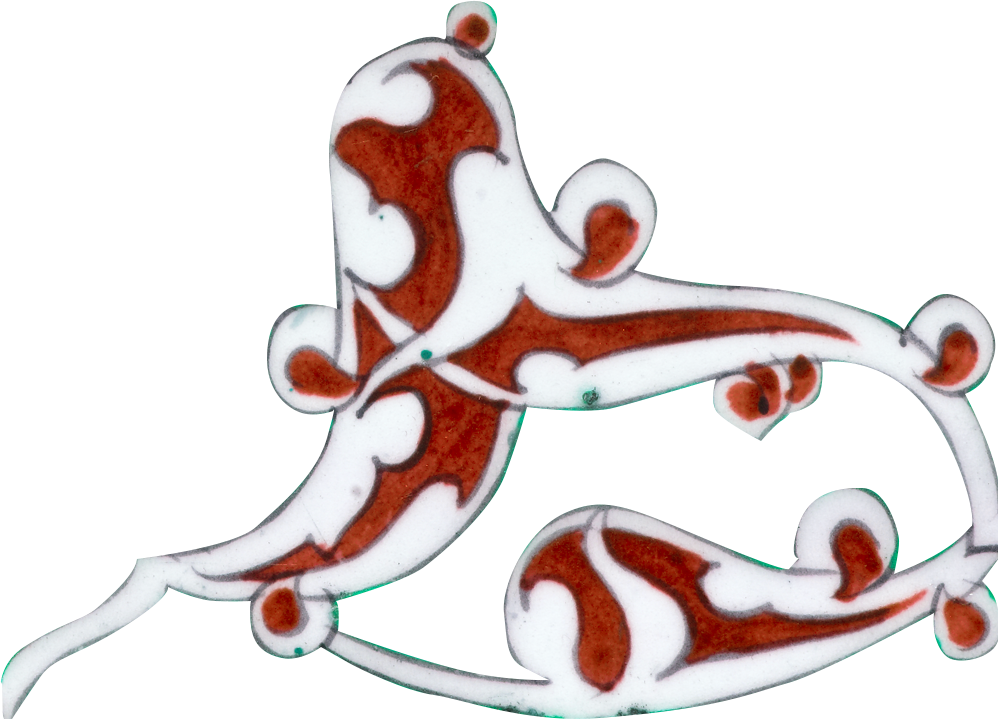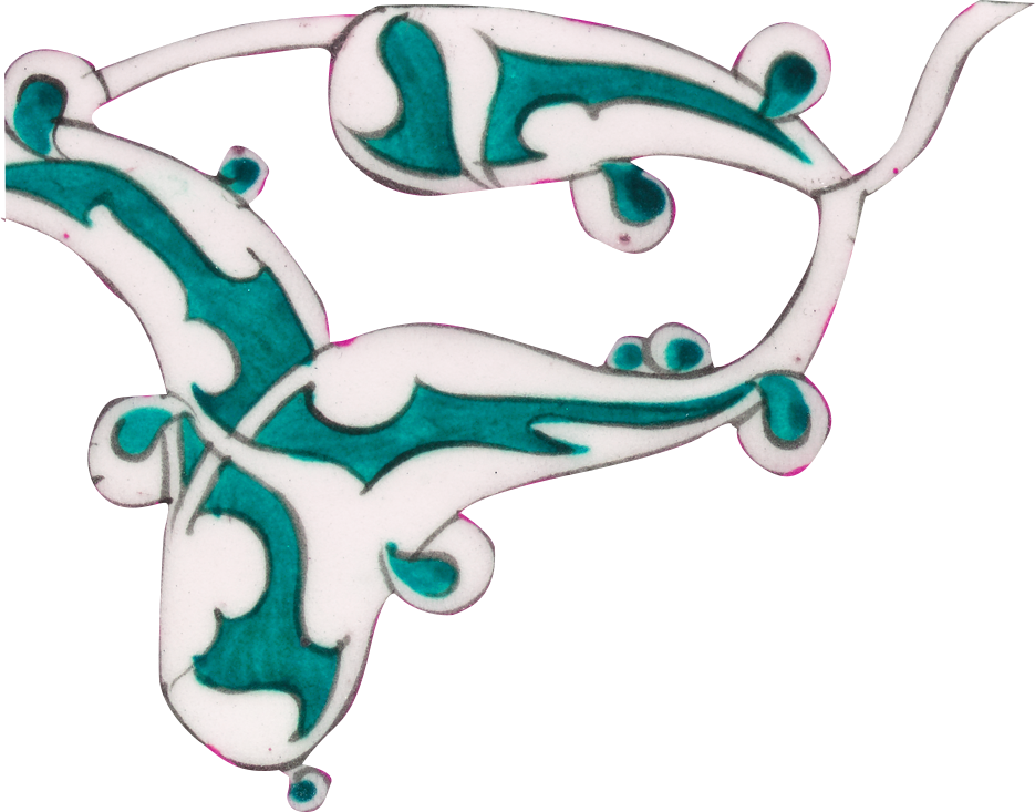 تصاميم متناظرة: لاحظوا التناظر بين الزخارف على هذه البلاطة على الرغم من أشكالها المنحنية.