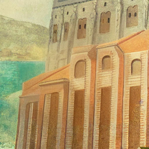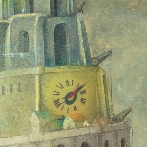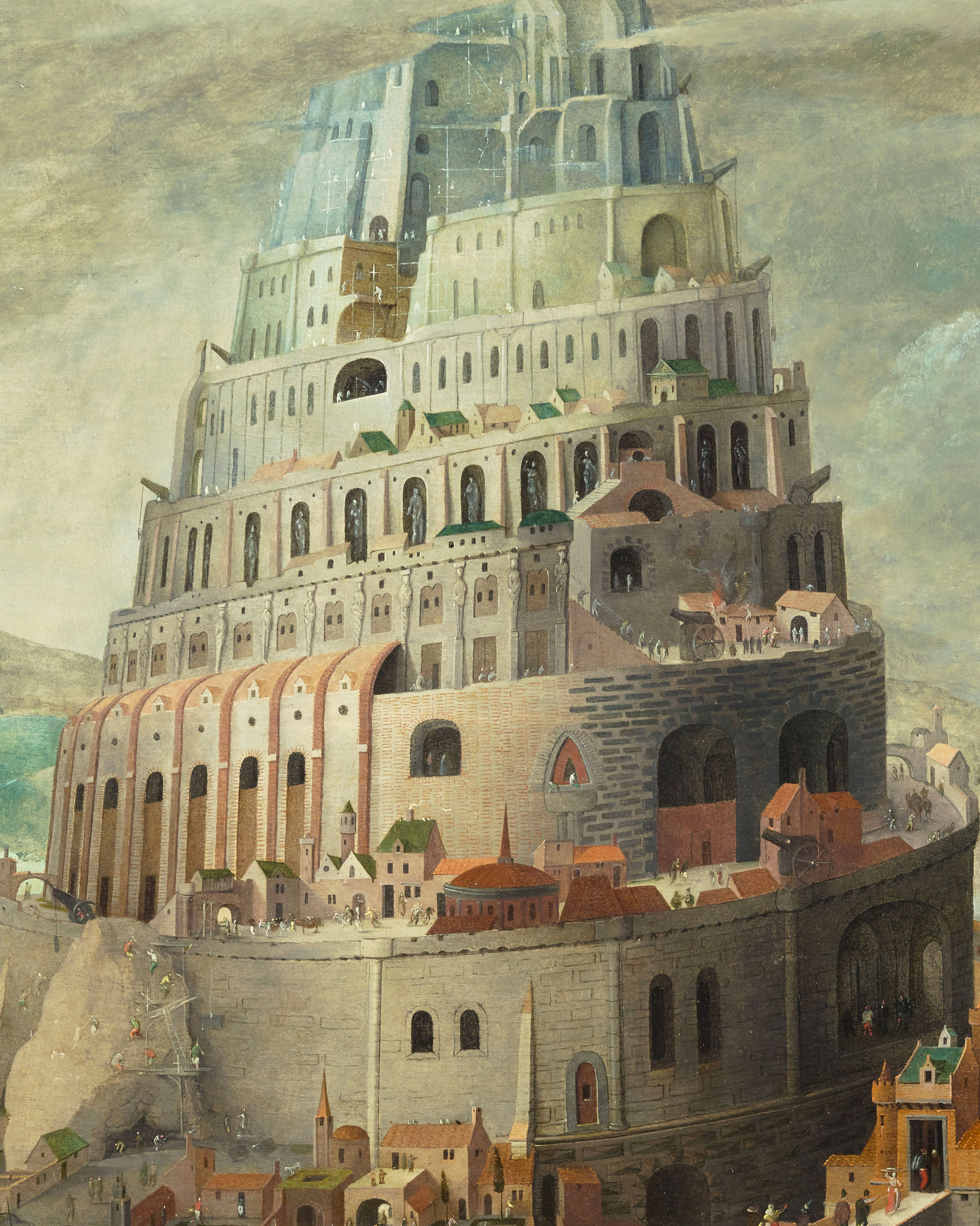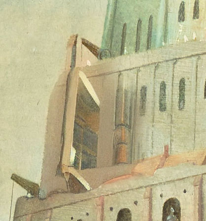 مخططات الملك نمرود: هل يمكنكم رؤية الملك نمرود؟ إنه ينظر إلى المخططات مع اثنين من المعماريين ويتخذ قرارات مهمة بشأن إنشاء البرج.