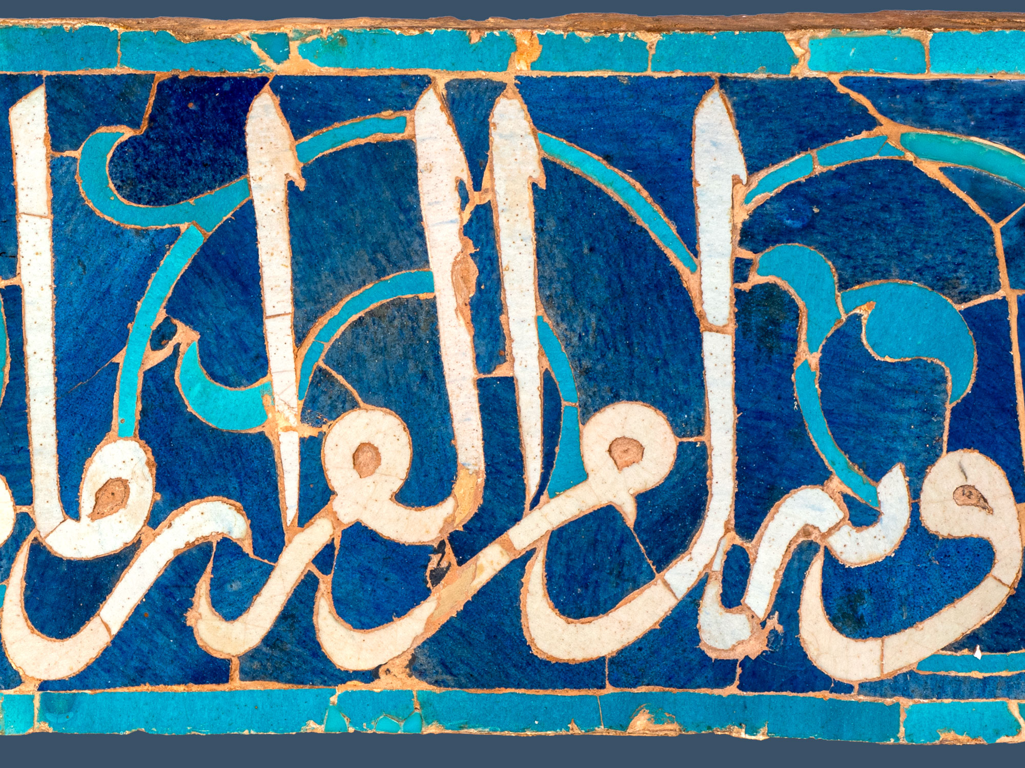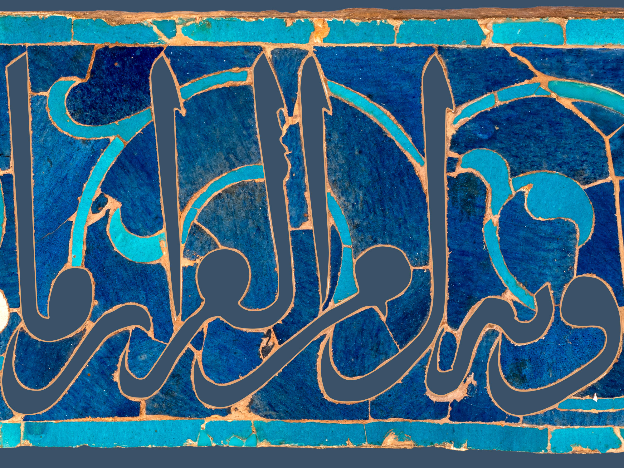 Striking Contrast Note the light and dark blue background that contrasts beautifully with the white calligraphic inscriptions to create a stunning visual effect.