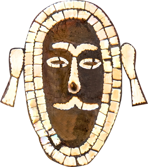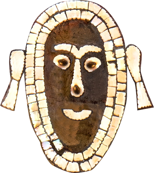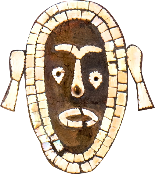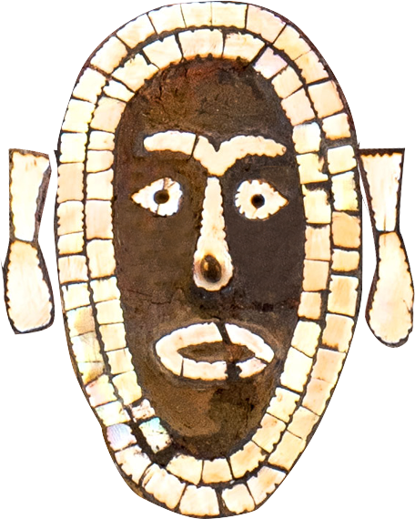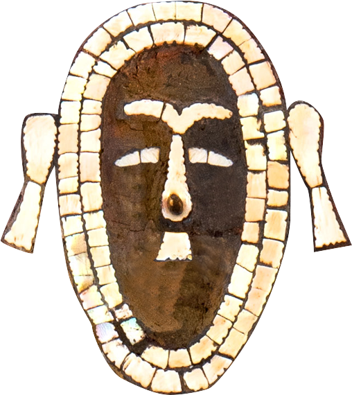 Wood, mother-of-pearl, fibres, parinarium nut paste, pigment