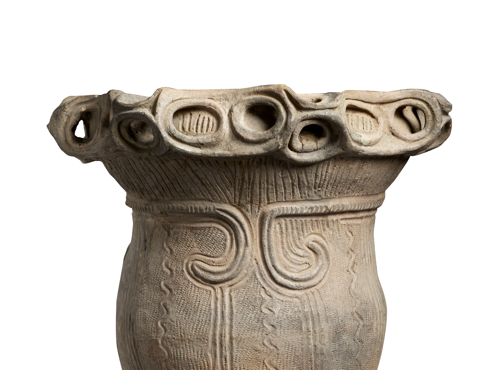 Mysterious Motifs The decorations could represent clouds, water, and fire elements possibly linked to ancient myths and beliefs. What do you think people cooked in this jar?