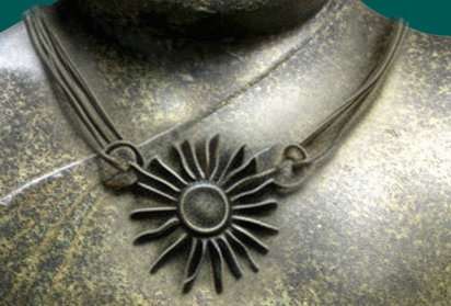 Символ благочестия Он изображен босым, без оружия и украшений, чтобы показать его смирение и преданность богам.