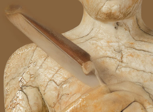 Отсутствующие глаза Его большие глубоко посаженные глаза, скорее всего, были инкрустированы раковинами или лазуритом, что придавало взгляду выразительность.