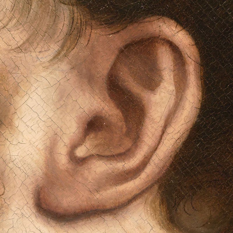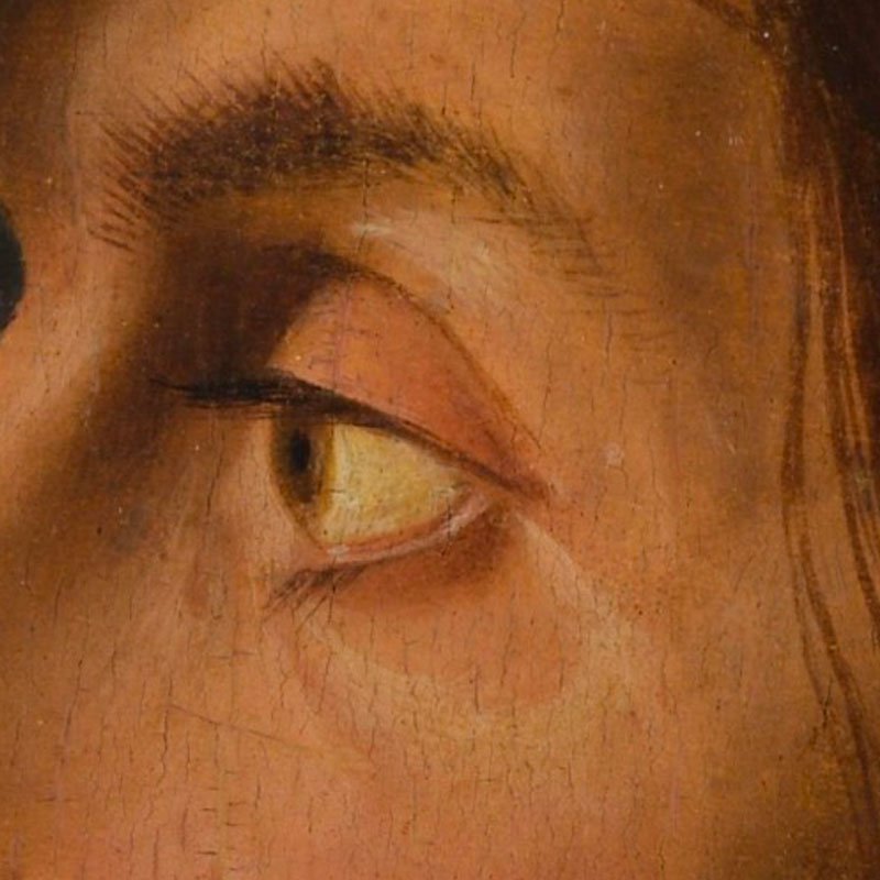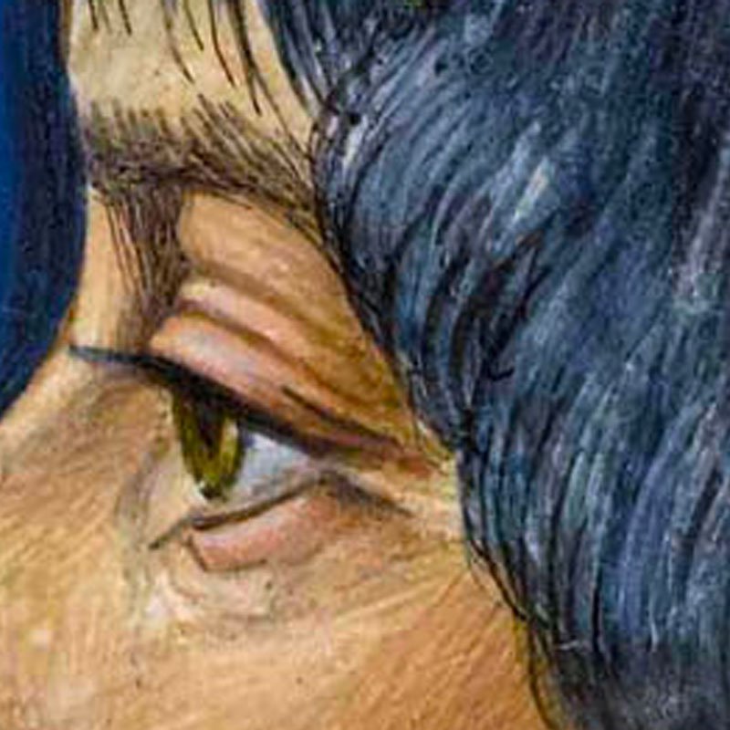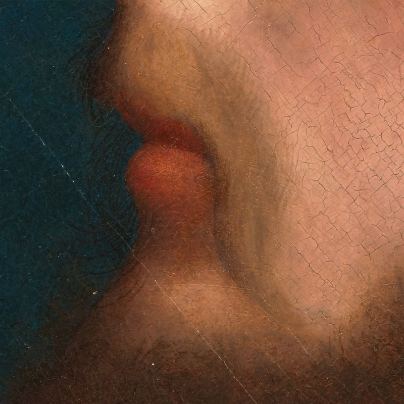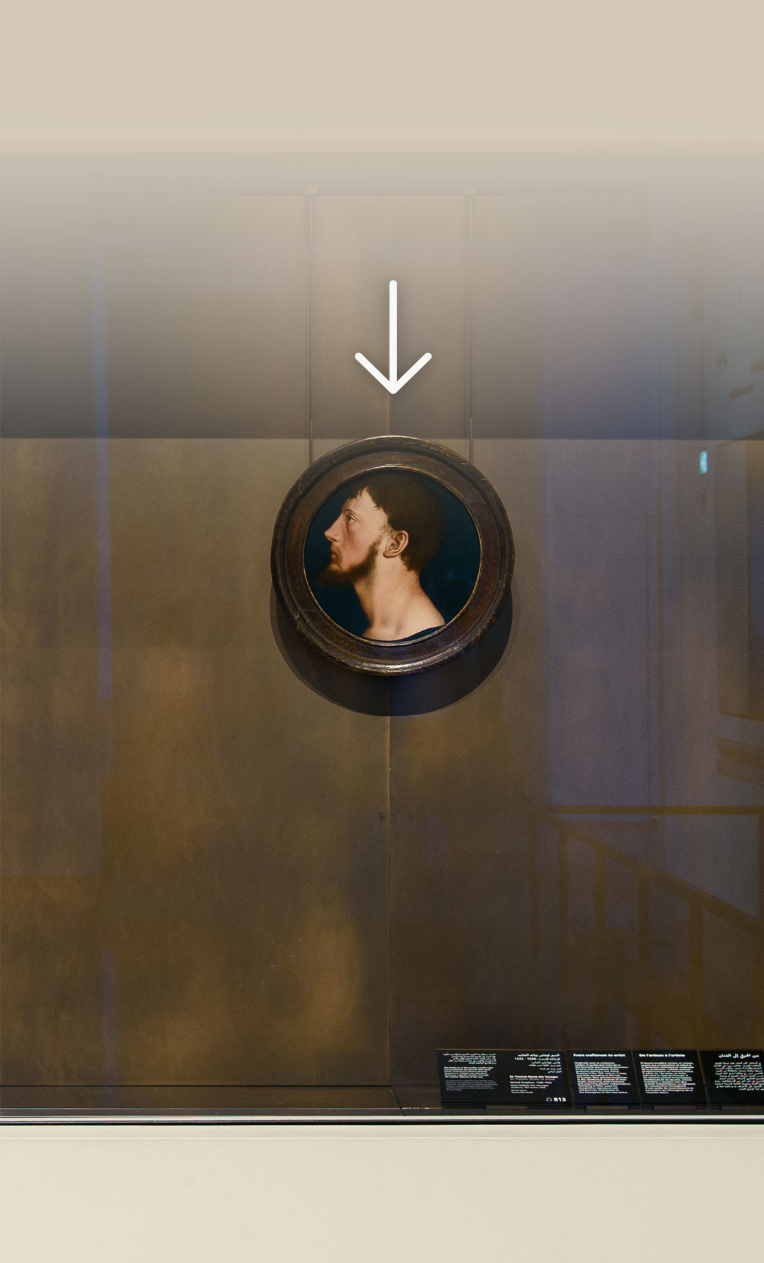 Твердый взгляд сэра Уайатта изображен со слегка поднятым подбородком, а его глаза пристально и уверенно смотрят вдаль.