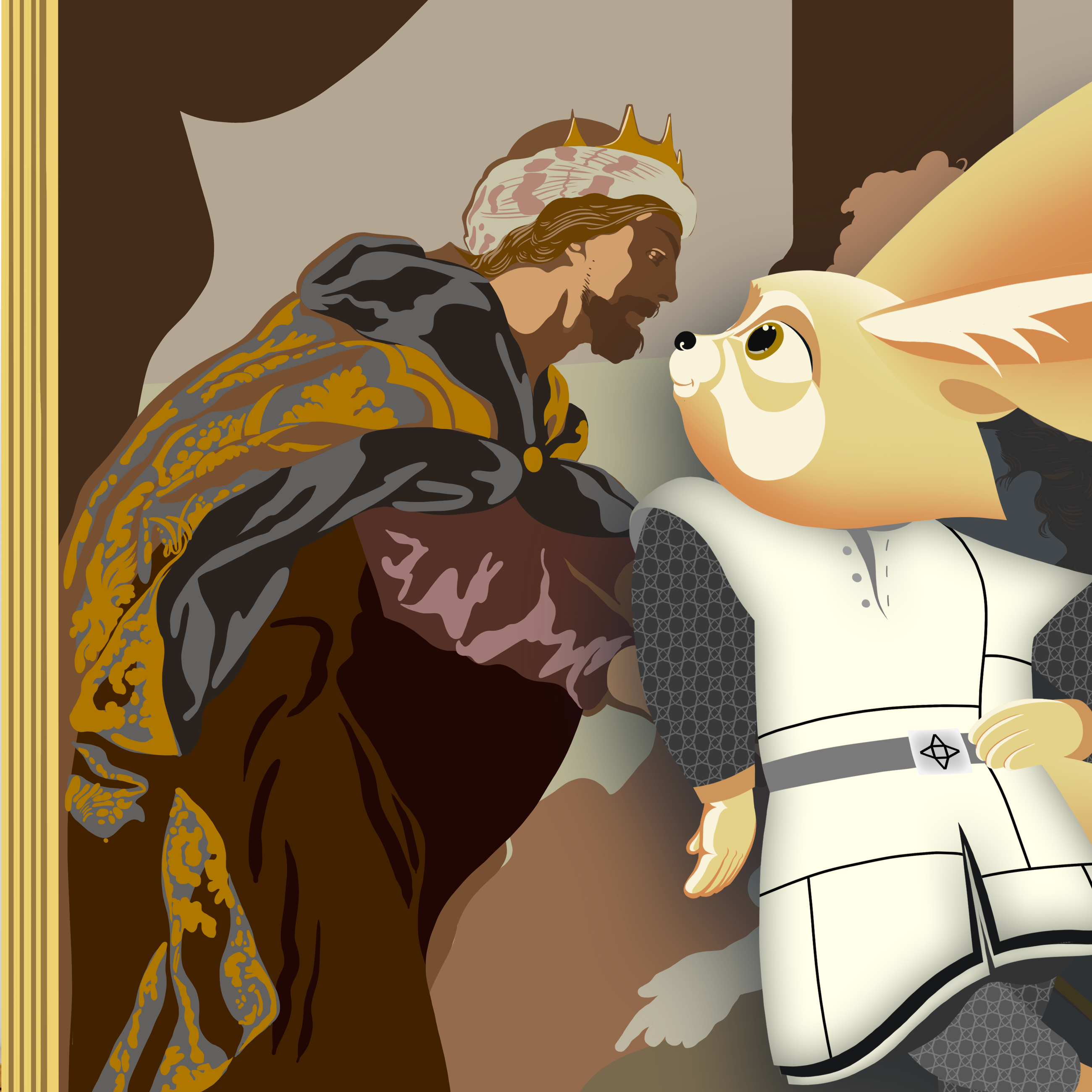 戏剧性十足 你可以看见王后晕倒在侍女的怀抱里,国王倾身向前,伸手搀扶。
